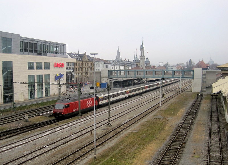 Mit einem SBB-InterRegio geht die Fahrt zunächst von Konstanz nach Zürich. Das Wetter präsentiert sich neblig-grau und lädt nicht zu Streckenbildern ein. Die heutige Fahrt wird uns durch fünf Länder führen, von Deutschland in die Schweiz, dann im Transit durch Liechtenstein nach Österreich und schließlich auf der Korridorstrecke durch Italien.