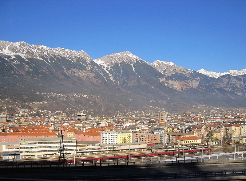 Der Zug quert nun noch den Inn und bald darauf ist Innsbruck Hauptbahnhof erreicht. Bis zur Weiterfahrt mit der Stubaitalbahn ist noch Zeit für eine kleine Runde in die Innenstadt.