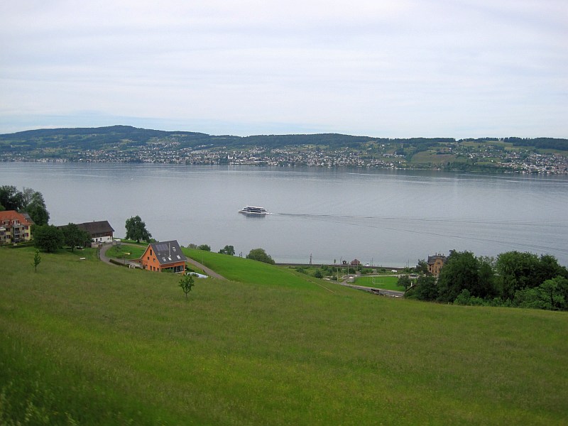 In St. Gallen besteigen wir gleich darauf den Voralpen-Express zur Weiterfahrt nach Rapperswil. Für diesen Streckenabschnitt sei auf einen Reisebericht aus dem Jahr 2012 verwiesen. Leider ist der Himmel auf der weiteren Fahrt nicht mehr so strahlend blau wie zu Beginn am Bodensee.
